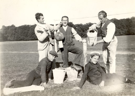 Brødrene Wiggers (stående) med hjælpere stod for kridtningen i 1920. Det foregik i de tidlige morgentimer |